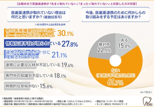 医歯薬連携が取れている割合が多い一方、連携が難しい理由も明らかに