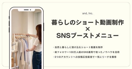 ライフスタイルに特化したマーケティングソリューションの提案をおこなう株式会社and(本社:東京都渋谷区、代表取締役:平貴衣)は、「暮らしのショート動画制作 × SNSブーストメニュー」の提供を開始いたします。