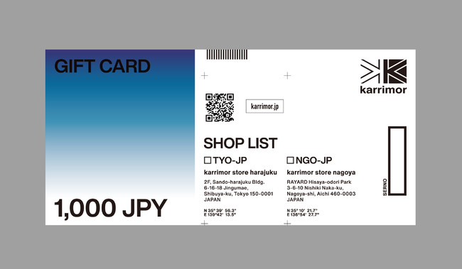 この度、イギリス発祥のアウトドアブランド『karrimor (カリマー)』は、カリマーストア限定となるギフトカード「karrimor GIFT CARD」を2020年12月19日(土)より発売いたします。