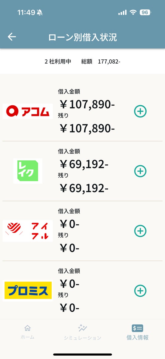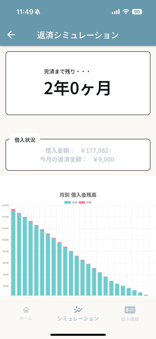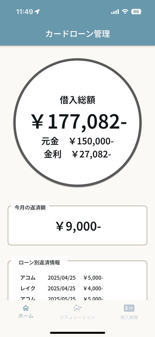 登録した借入情報から総額と利息を計算し、現在の状況をひと目で把握できます。
