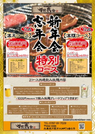 【牛飲馬食】の忘年会・新年会の満腹!満足!特別コース・概要