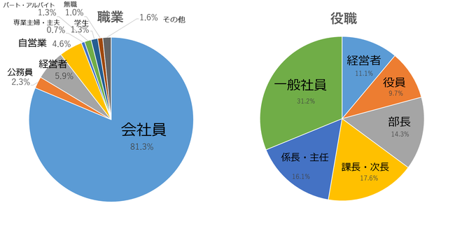 ・役職 課長・次長職以上:52.7% 役職付き:68.8%