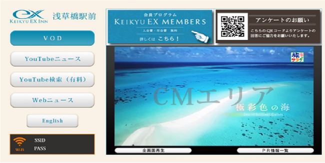 朝日放送グループの株式会社ABCフロンティア(本社:東京都港区 代表取締役会長:的場崇)とホテル向けIoTソリューションを提供するブリッジ・モーション・トゥモロー株式会社(本社:東京都品川区 代表取締役社長:島本茂弘)が運営するホテル客室テレビCM『おもチャンネル』を京急 EXイン約1,600室でも展開する。