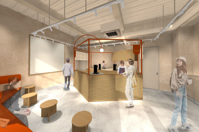 店内は、ミツバチプロダクツの社名の由来でもある「ミツバチが仲間と想いを共有し活動し続ける」という想いを表現し、ミツバチの巣をイメージしたハニカム形状を取り入れています。開放的で、竹細工を取り入れてナチュラルに仕上げ、お客様だけでなく店内スタッフも、楽しくリラックスできる空間を目指しています。また店外には手作りで木のぬくもりを感じることができるベンチを設置します。