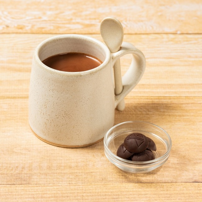 チョコレートドリンクはミツバチプロダクツの業務用チョコレートドリンクマシンINFINI MIXを使用し、注文を受けてから作る「一杯仕立て」のため、作り立てを楽しむことができます。INFINI MIXは高温スチームで溶かしたチョコレートを、内蔵された攪拌羽根とブレンダー孔が短時間でリキッドと混ぜ合わせ、非常に滑らかなチョコレートドリンクに仕上げます。