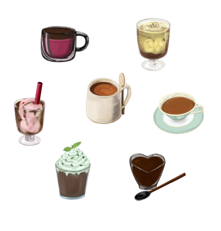 ベースチョコレート(3種類)と飲み物(4種類)を選んでいただきお好みのチョコレートドリンクをご提供します。