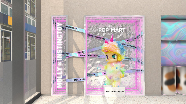 店舗入り口に構えるブーススポットでは、「MOLLY X INST INCTOY」のフィギュア、EROSIONシリーズのデザインを継承。素材に金属や照明の設定を用い、レーザーテクスチャーの輝きやノンストップラインの追加によりサイケデリックと子供らしさを融合した没入感のある空間を演出しています。