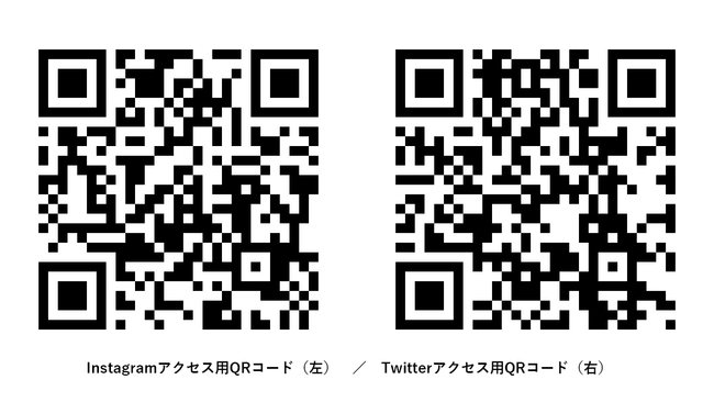 〇公式Instagramアクセス用QRコード(左) / Twitterアクセス用QRコード(右)