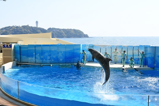 さらにリニューアルオープンしたイルカショースタジアムでは、相模湾に浮かぶ江の島と富士山を背景にイルカショーを楽しめます。