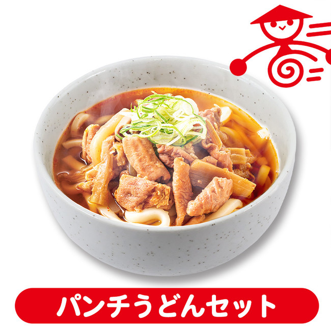山田うどんのロングセラー大人気商品のパンチ(もつ煮込み)をうどんと合わせた、コクのあるパンチうどんセットです。