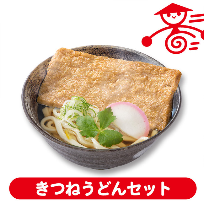 甘めの味付けで大きなきつね揚げがセットになった幅広い年代に愛される、定番のきつねうどんセットです。