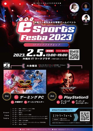 「沖縄市e-sports festa2023 ITワークプラザカップ」で競われるゲーム種目は「ストリートファイターV チャンピオンエディション」と「鉄拳7」の2タイトル。ダブルイリミネーショントーナメント形式で、オフライン対戦で開催されます。(参加無料・Youtube配信あり)現在対戦者のエントリー受付中です。