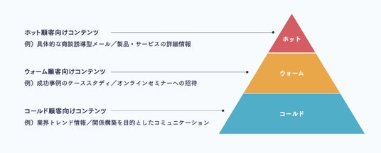 顧客をホット・ウォーム・コールドの3段階に分類し、それぞれに最適化されたコンテンツを自動配信。