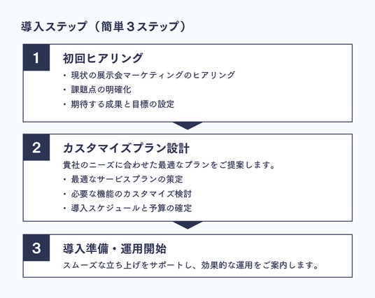 多くの顧客出展サポートの経験から、「どのタイミングで何が必要か」「どこでつまずきやすいか」を熟知しています。