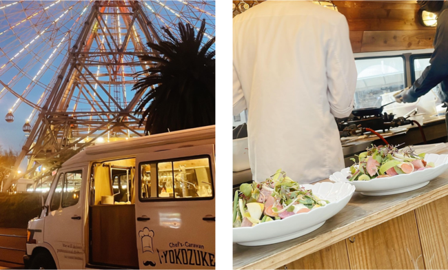 YOKOZUKEは、全国の生産者から受け取った食材をキッチンカーに積み込み、街から街へ、人から人へ、旅する料理人が営む移動レストランです。
