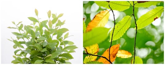 左:ブルーベリー「くにさと35号」、右:ウラジロガシ