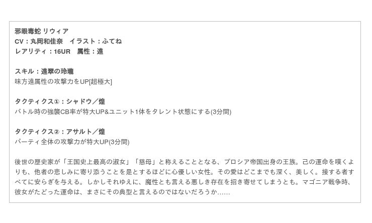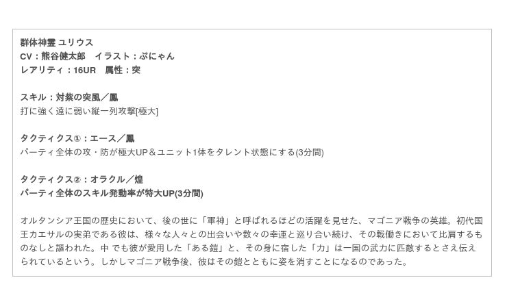 また、16UR「ユリウス(CV:熊谷健太郎)」「リウィア(CV:丸岡和佳奈)」の2ユニットが新たに登場します。