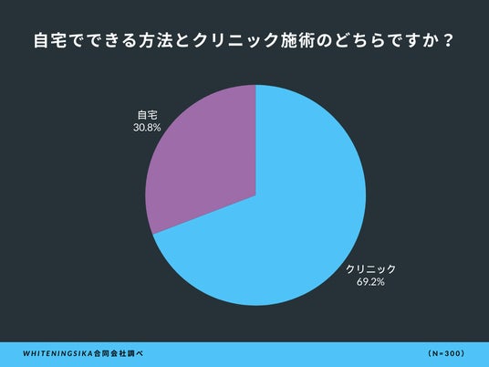 ホワイトニングの方法については、「クリニック」での施術を選んだ方が69.2%と、約7割を占める結果となりました。専門家による施術で、より確実な効果や安全性を求める方が多いことが考えられます。