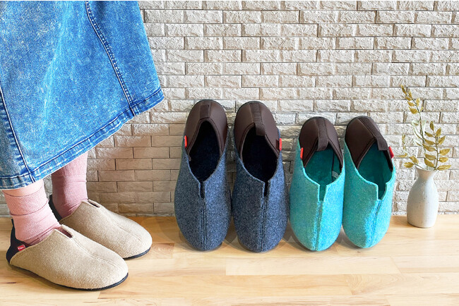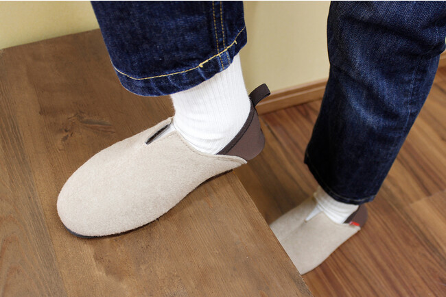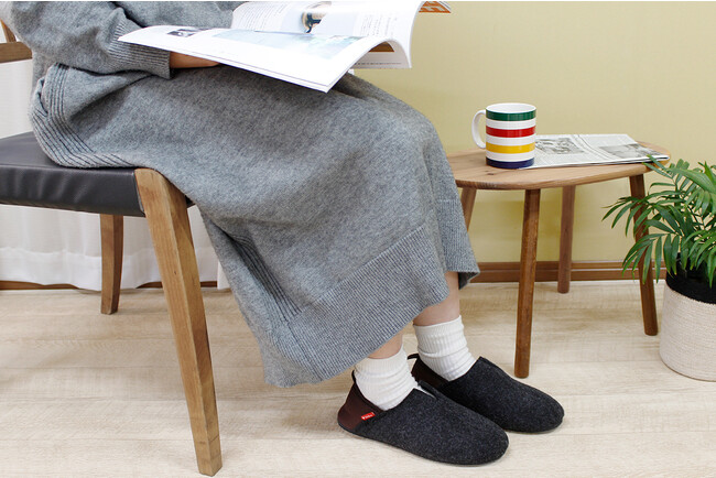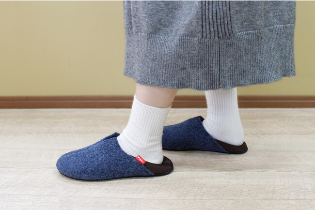 アッパーもインソールもふんわりと柔らかいフェルト生地で、一度暖まった熱を逃さず、暖かい状態を保ってくれます。また、吸湿性・放湿性にも優れているので、汗による蒸れや冷えも防ぐのでこれからの季節に最適です。