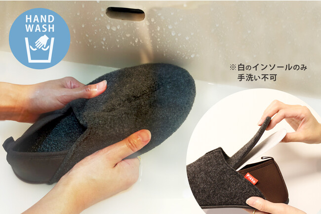 中性洗剤を溶かしたぬるま湯でザブっと洗えます。(※一部インソールは取り外す必要があります。)