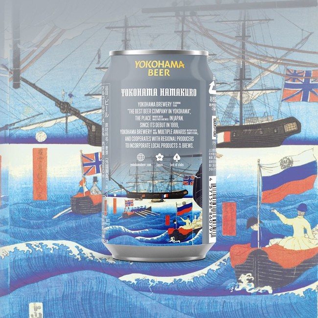 表はモノクロに、裏にはカラーで横浜浮世絵を使用し、今回「横浜交易西洋人荷物運送之図」をあしらいました。交易で賑わう横浜港のありさまが描かれており、新旧のどちらの良さも兼ね備えている横浜の魅力を表現したデザインです。「横浜ビール」缶ビール第3弾「ハマクロ」にご期待下さい!
