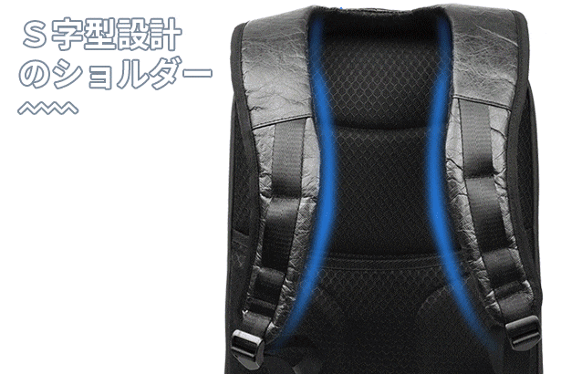 バックパックはショルダー部分をS字型にし、背中の湾曲にしっかりフィットするように設計されています。これによって肩への負担が軽減され、より快適に背負えるようになりました。