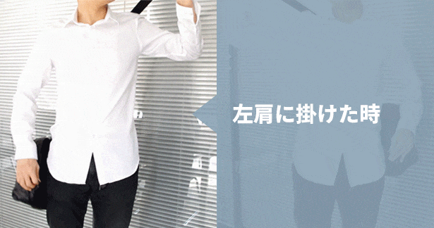 ショルダーバッグのショルダーは3つのポイントで支える設計となっており、斜め掛けでも片方の肩でもしっかり背負えます。また、左右の両掛け対応で肩の疲労を軽減します。