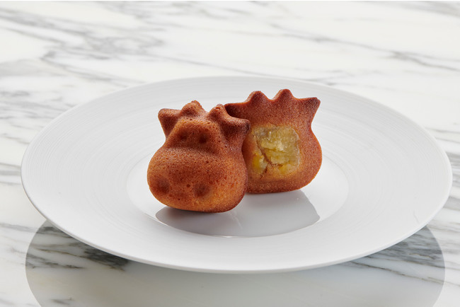 小麦粉の代わりに無農薬のバナナで作ったバナナ粉をたっぷり使用したグルテンフリーのフィナンシェ。生地には栗の粉末、国産の和栗で作った甘露煮が優しい甘さを引き立て絶妙なアクセントに。