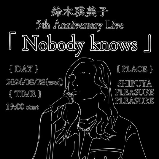 鈴木瑛美子が8月28日(水) SHIBUYA PLEASURE PLEASUREで“5th Anniversary Live”「Nobody Knows」を開催し、未発表曲14曲を熱唱した!!!