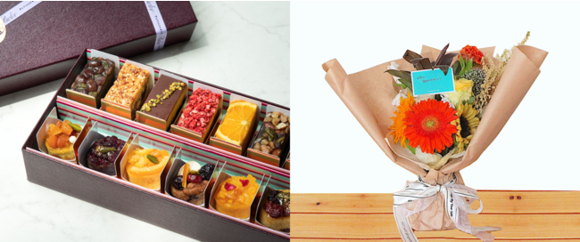 またプレゼント用に、花瓶をセットにした花束ブーケ、扱いやすいドライフラワーのアレンジ・リースのほか、GINZA SIXなどの人気グルメ商品に「お花」をプラスし、センスアップした贈り物も可能です。家族・友人の誕生日や「父の日」などの特別な記念日に、または大切な取引先の創業・開店記念祝いなどにもお勧めです。
