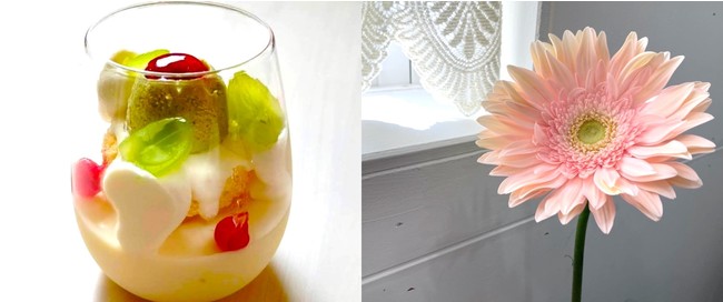 おやつのスイーツにお花を添えると、お家でカフェ気分が味わえます。