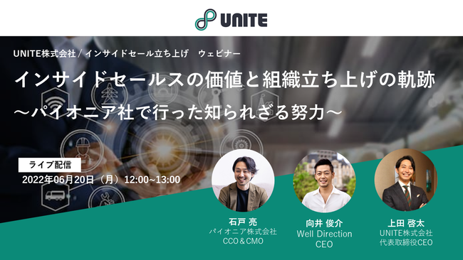 インサイドセールス組織立ち上げ支援を行っているUNITE株式会社(https://unite-biz.com/)は、6月20日(月)12:00から【インサイドセールスの価値と組織立ち上げの軌跡~パイオニア社で行った知られざる努力~】セミナーをオンラインで開催いたします。