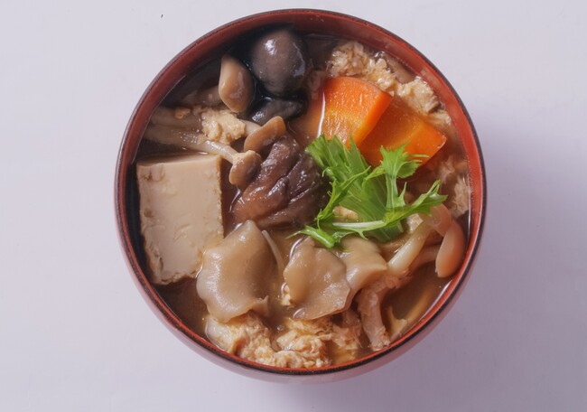 霜降りひらたけと一番採り生どんこの卵とじお味噌汁 税込450円