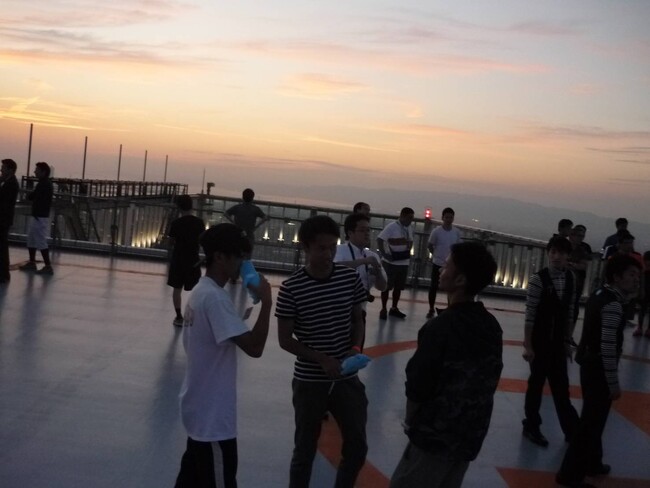 普段は自動車販売を通じて、お客様の安心・安全・快適なカーライフをサポートするお手伝いをしておりますが、この研修では一切の交通機関を使わず、自分の足でハルカスまで辿り着き、さらに屋上ヘリポ ートまで到達するという2段階のチャレンジとなっており、日本でもオンリーワンの取り組みであると自負しております。