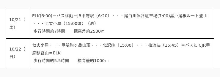 ・山梨県内の登山愛好家のニーズを考え、集合解散は駐車も便利なエルク店頭となります(現地集合解散も可能)。
