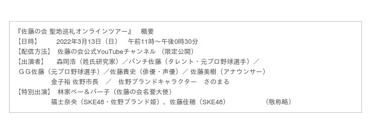 「佐藤の会 聖地巡礼オンラインツアー」の生配信が終了したあとは、どなたでもご覧いただけるように一般公開致します。予定が合わずオンラインツアーに参加ができなかった方もぜひご覧ください。