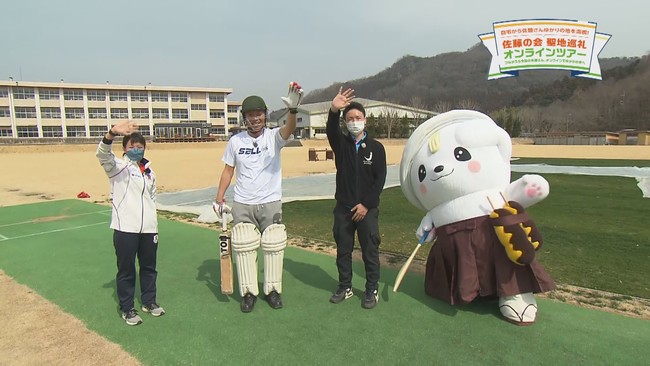 ふとグラウンドに目を向けるとそこにはクリケット対決をする佐野ブランドキャラクターさのまると選手の姿が。日本人として初めて海外リーグとプロ契約した宮地静香選手が意気込みを語ってくれました。パンチ佐藤さんも張り切って対決に乱入し、楽しく体験しました。