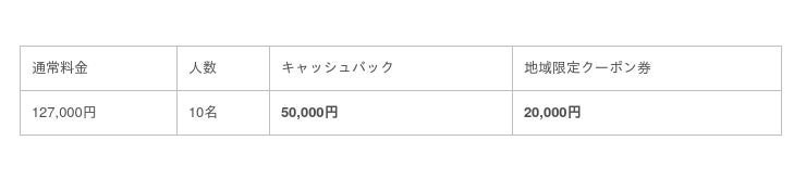 キャッシュバック+地域限定クーポン合わせると、70,000円がお得となり、実質31,000円で宿泊が可能。