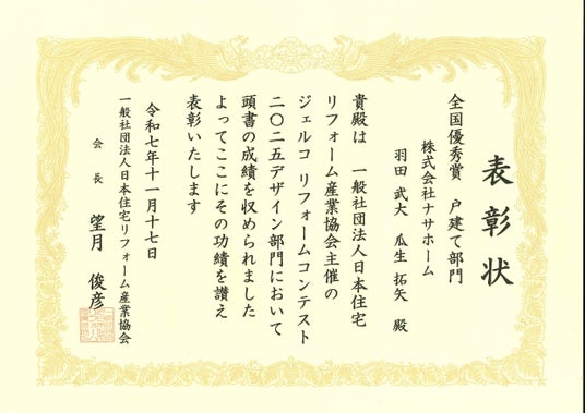 株式会社ナサホームは、創業以来「快適で幸福な住空間の創造提供」をミッションに、関西・関東・中京エリアを中心にリフォーム事業を展開しております。今回の受賞を励みに、これからも住まいが本来持つ価値と、そこに息づく想いを大切にしながら、一人ひとりの暮らしに寄り添った住まいづくりを続けてまいります。