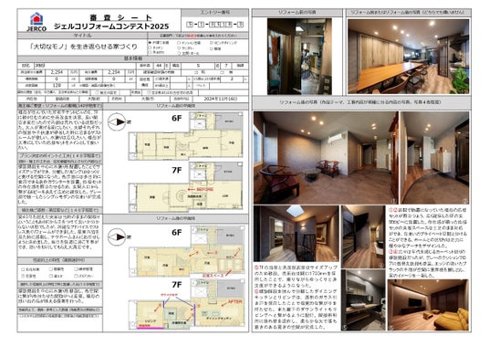 「人の物語をつくる喜び。暮らしをつくる責任。」をコンセプトに、増改築リフォームの設計・施工・アフターメンテナンスを手がける、株式会社ナサホーム(本社:大阪市北区、代表取締役:江川貴志)は、一般社団法人日本住宅リフォーム産業協会(JERCO)が主催する「ジェルコリフォームコンテスト2025」デザイン部門において、全国優秀賞を受賞いたしました。受賞作品『「大切なモノ」を生き返らせる家づくり』は、築44年のテナントビル上層階を住居へとコンバージョンしたリフォーム事例です。既存の螺旋階段を活かした大胆な空間設計と、施主様の祖母が長年大切にされてきた応接セットを住まいの中心に据えたストーリー性のあるデザインが高く評価されました。