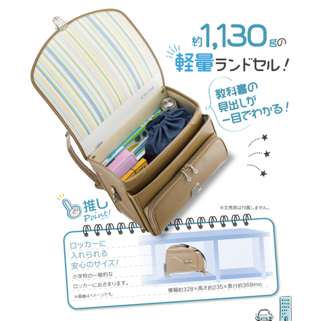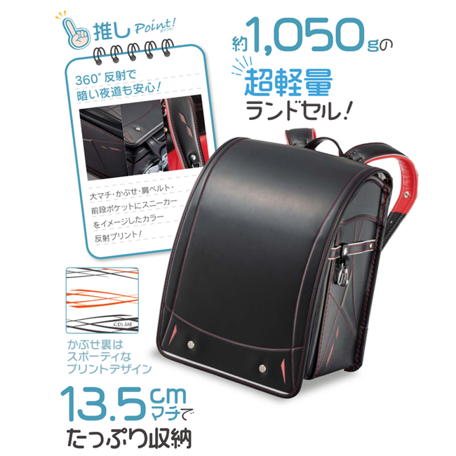 グッドデザインを受賞した「半かぶせランドセル」の最新作。
