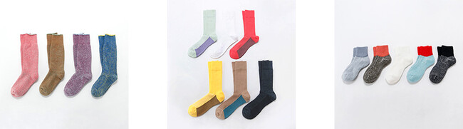 リサイクル糸を使用した商品。 紡績から履き心地を配慮した商品。 和紙を使った商品。