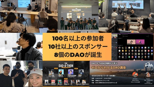 昨年度「DAO-A-THON 2023」を東京で開催し、大成功を収めました。国内外のWeb3プレーヤー、学生、起業家、エンジニアを対象に、DAOの普及と開発を目的として実施されました。開催期間は2023年4月1日から4月9日までの一週間で、参加者は前半の3日間でDAOのビジネスモデルを考案し、後半の3日間でブロックチェーン上でのローンチを行いました。