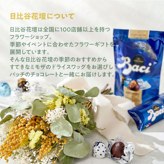 今回はそんな国際女性デー&ミモザの日を記念し、バッチのおすすめ商品と日比谷花壇プロデュースのミモザを使ったドライスワッグをセットにして10名様にお届けします。応募方法はInstagramのバッチ日本公式アカウント(@baciperugina_jp)をフォローして投稿にいいねするだけで簡単。