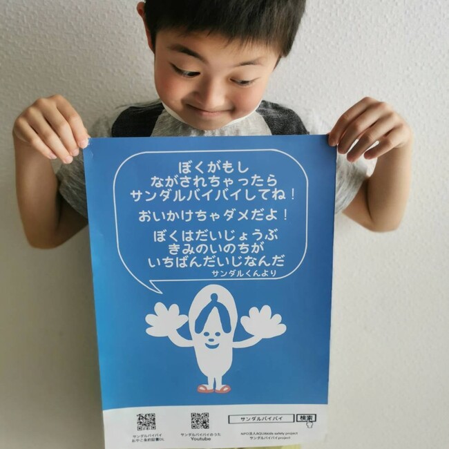子どもの水難事故予防を啓発するNPO法人AQUAkids safety project(所在地:大阪市中央区、代表者:すがわらえみ)は、流されたサンダルやモノを追いかけて溺れてしまう子どもの水難事故を予防するキーワード「#サンダルバイバイ ハッシュタグ1つで出来る子どもの水難事故予防」が、「第17回キッズデザイン賞 子どもたちの安全・安心に貢献するデザイン部門」を受賞したことをお知らせいたします。