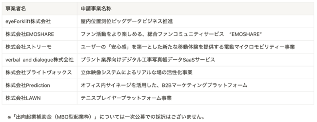【出向起業補助金(一般枠)採択事業者(一次公募/五十音順)】