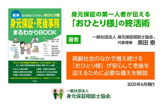 一般社団法人身元保証相談士協会(代表理事:黒田 泰)は、2025年6月に新刊『身元保証・死後事務まるわかりBOOK』を発行いたします。本書は、近年急速に社会的関心が高まっている「おひとり様の終活」にフォーカスし、特に重要とされる「身元保証」や「死後事務」について、豊富なイラストと実例を交えながら、やさしく解説しています。