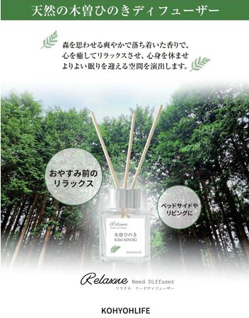 有限会社ランエン(本社:神奈川県川崎市)は、自社オリジナル企画の生活雑貨ブランド「KOHYOHLIFE コーヨーライフ」から、天然の木曽ひのきを使用したディフューザー「Relaxne Reed Diffuser リラクネ リードディフューザー」を新発売したことを睡眠の日にちなんでお知らせ致します。