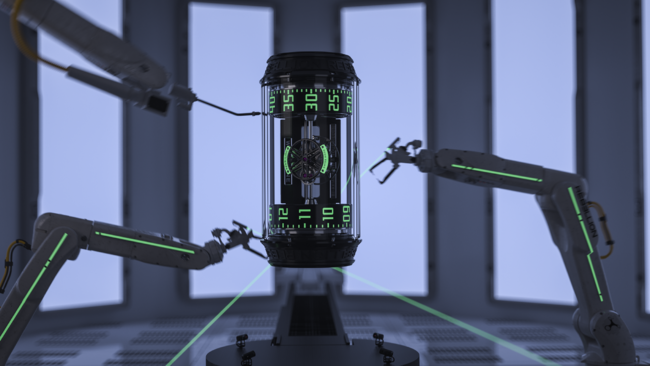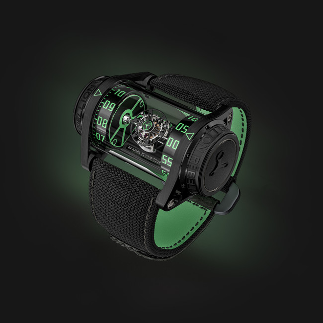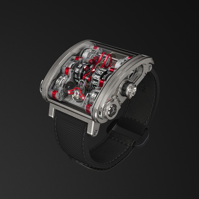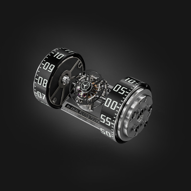 Rebellion Timepiecesは「Weap-One biaxial Tourbillon」で再び感動を呼び起こします。直径25mm、長さ53mmの細身のサファイアチューブとチタンのケースに、Rebellion Timepiecesによって新解釈された2軸フライングトゥールビヨンが搭載されています。