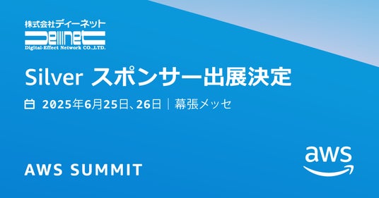 株式会社ディーネット(代表取締役:高橋 一男、本社:東京/大阪 二本社制、以下ディーネット)は、2025年6月25日(水)、26日(木)幕張メッセで開催される「AWS Summit Japan 2025」にシルバースポンサーとして出展します。同展示会への出展は、2022年開催の「AWS Summit Online」、